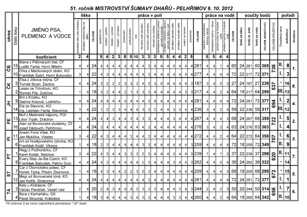 51. ročník Mistrovství Šumavy, soutěž Antonína Pražáka 06.10.2012